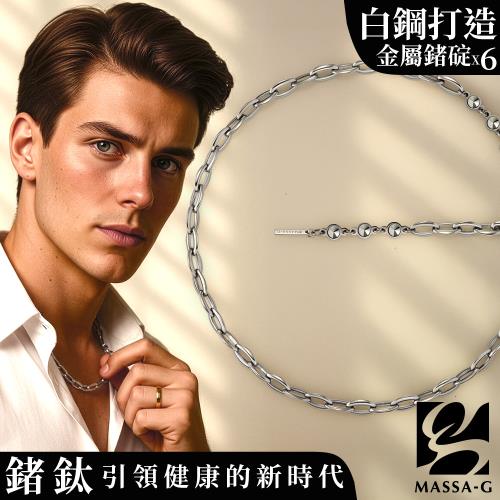 MASSA-G【阿波羅之鍊Apollo】6顆金屬鍺錠白鋼項鍊(7MM)