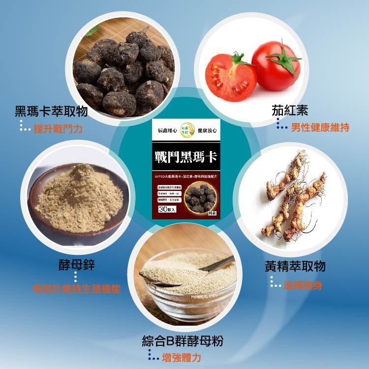 本產品以世界第一大廠UHTCO所生產的黑馬卡Macapro為主要原料,複合酵母鋅、黃精萃取物、茄紅素等專家複合配方、配方完整,彼此間具有協同作用,是男士保健精品,可有效增強體力、滋補強身,維持滿滿的能量。
