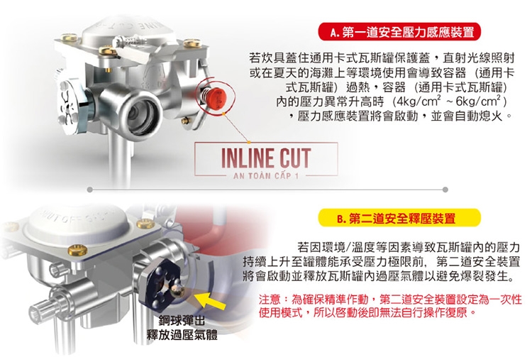 ◆使用卡式爐時,勿在密閉空間使用,以必免造成缺氧或一氧化碳中毒之意外