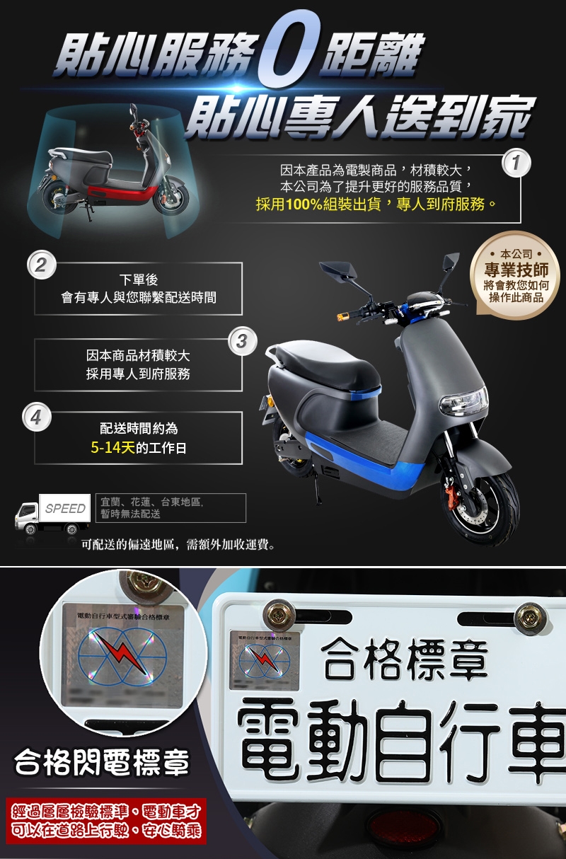 ※里程測試標準為全新電池飽電壓狀態,騎乘者重量75kg、變速0~25km/hr、定速25km/hr。