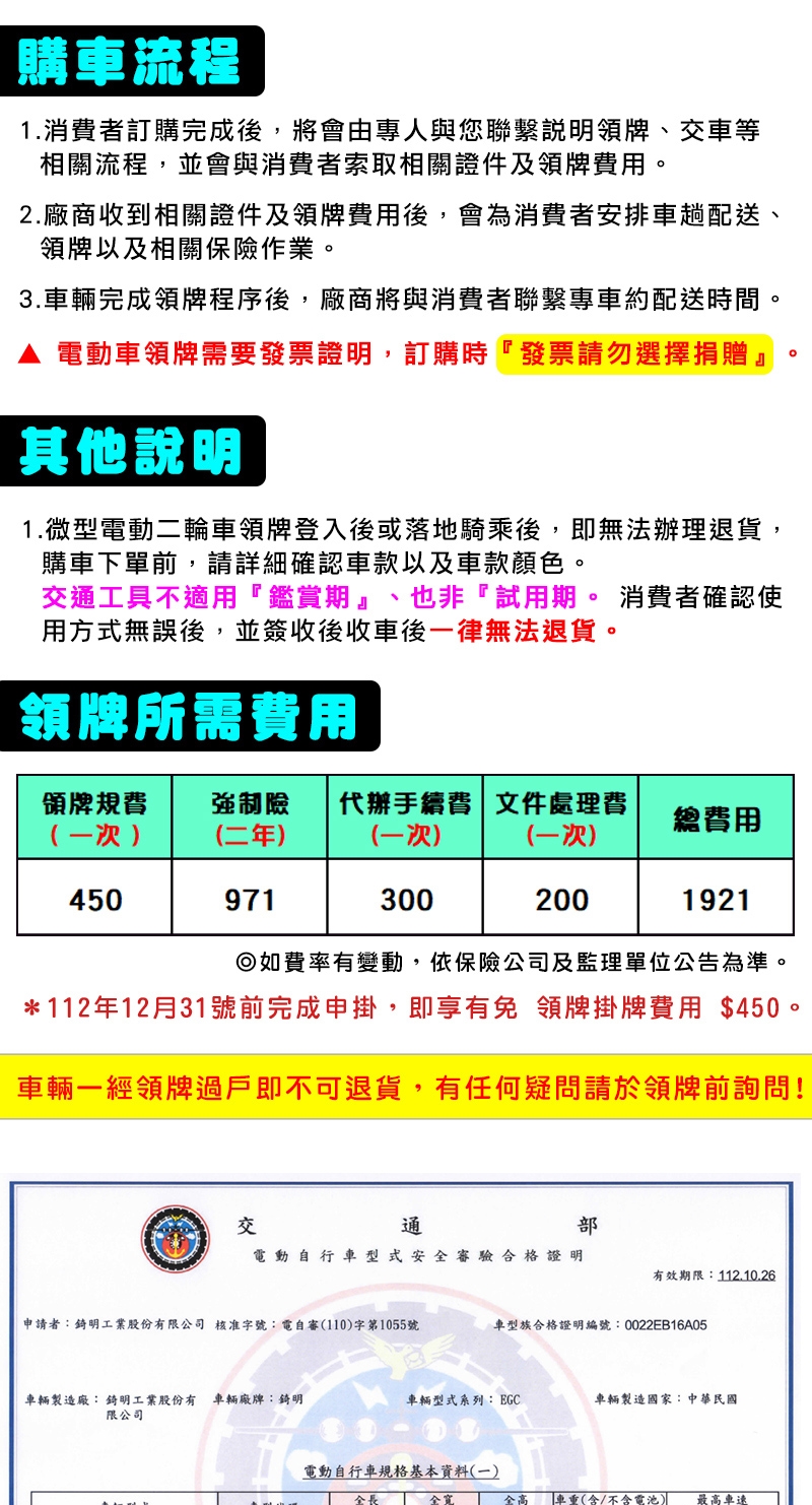 ※行駛里程會受騎乘者重量、載重、路面坡度、風速、高低間段變速行駛次數、氣候溫度及電池充電效率及使用時間衰退而影響。