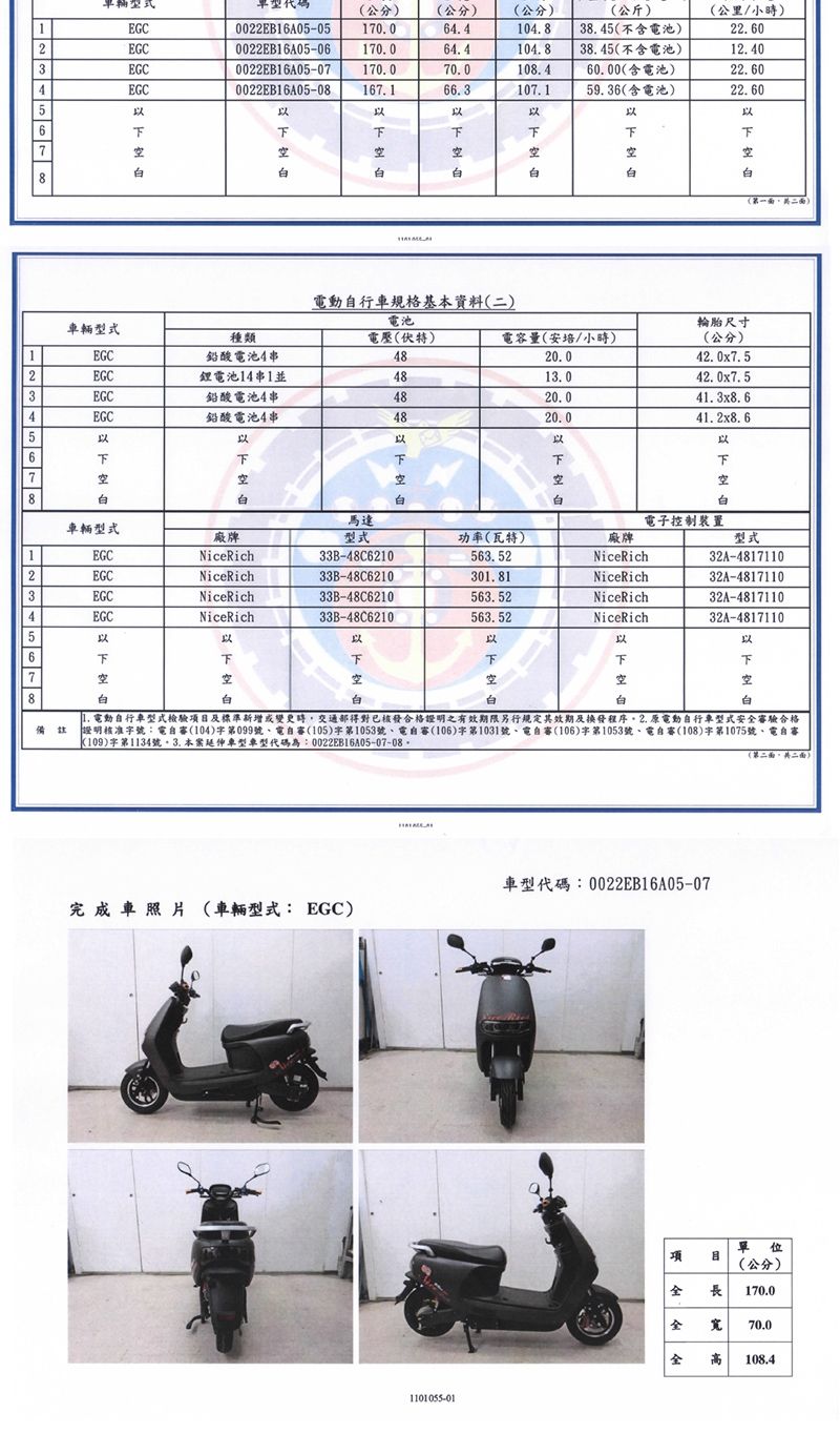 (本表數據僅供參考、實際數據會依車輛及電池情況有所差異)