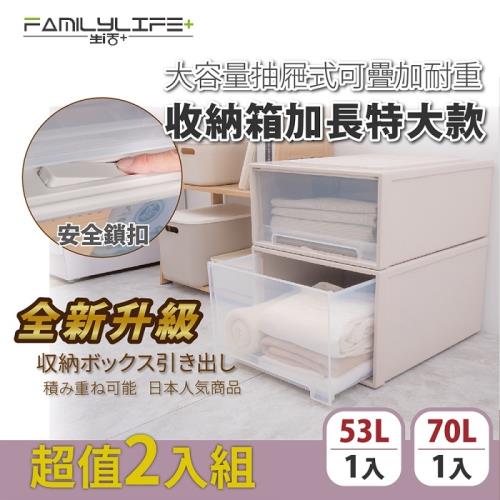 【FL生活+】2入-加長特大款-(53L+70L)-抽屜安全卡扣可疊耐重收納箱(YG-040+YG-041)