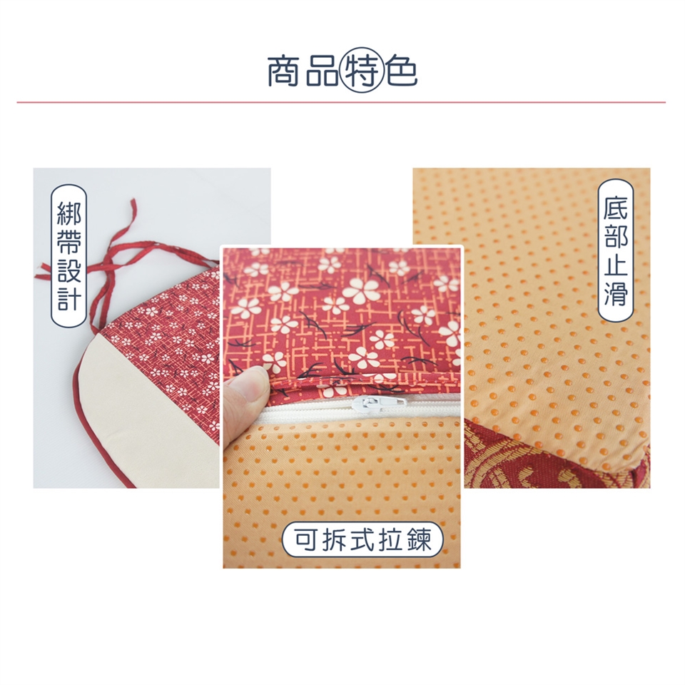 用餐是件令人愉快的事,除了美味的餐點外,舒適的用餐空間也是影響用餐情緒的因素之一。一般的木製餐椅或藤椅,生硬的椅面坐久了總是讓臀部感到不舒適,如果因為這種問題而影響自己的用餐情緒,那可真是不值。推薦您這組錦花記憶型餐椅墊,全程台灣精製,免除您對大陸製品的疑慮。高品質記憶惰性聚合泡棉,不易變型扁塌,增加使用年限。附有綁帶可固定於餐椅上,椅墊不會隨意滑動。可拆洗的設計,清潔方便不費力,不僅增添您用餐時的舒適感,同時也改變了用餐空間的視覺感受哦!