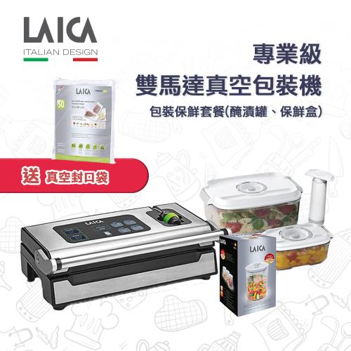 送真空封口袋【LAICA 】專業級雙馬達真空包裝機 VT32400 包裝保鮮套餐(醃漬罐、保鮮盒)