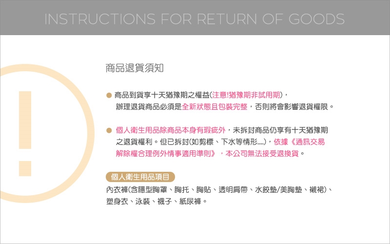 3. 勿長時間浸泡、勿使用熱水、勿使用漂白水、勿使用烘衣機。