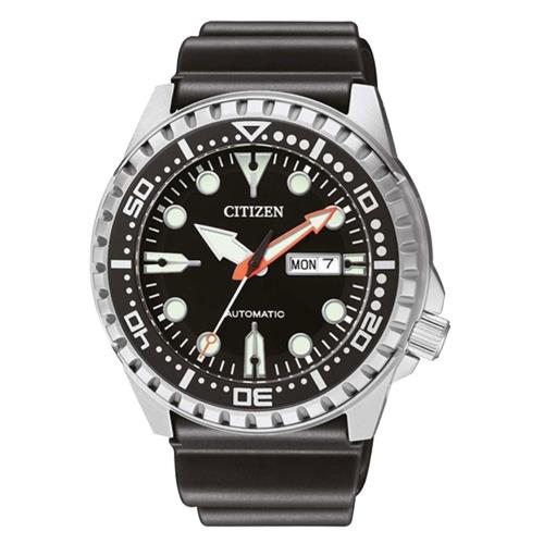 【CITIZEN 星辰】機械男錶 合成橡膠錶帶 黑色表面 防水100米 日期/星期顯示(NH8385-11E)