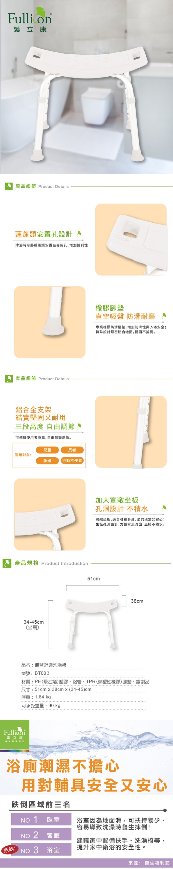 ◆ 防滑腳墊 增加防滑性與入浴安全