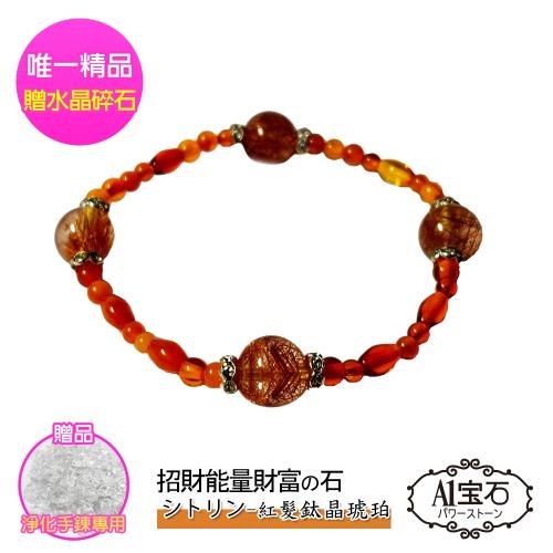 A1寶石 時尚紅髮鈦晶-琥珀蜜蠟手鍊-增強桃花貴人運-招財開運帶來正能量