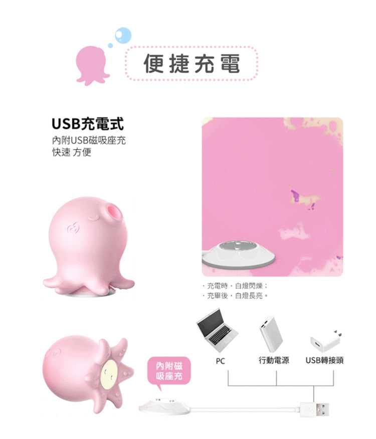 配件:按摩器、USB磁充座、使用指南(中文及英文)