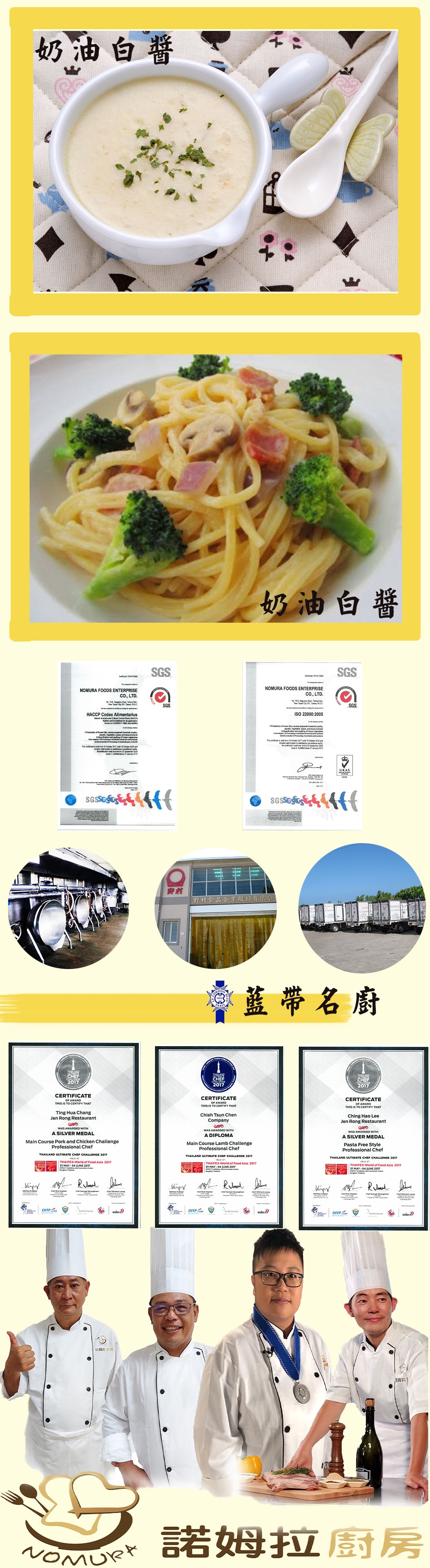 標準西式料理炒麵粉糊為基底搭配蔬菜高湯的白醬食材,兼顧快速與美味的料理。
