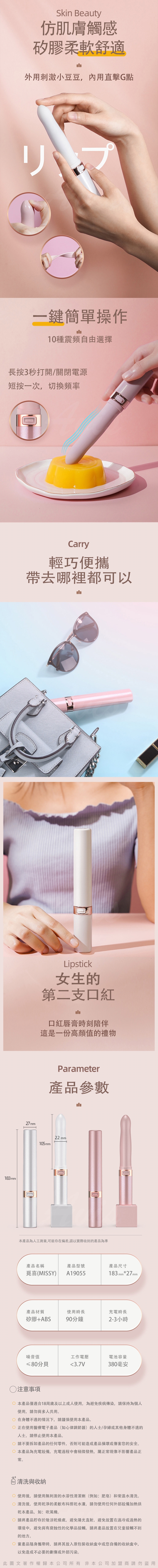 .主商品:GALAKU-MISSY覓喜 10段變頻口紅震動按摩棒