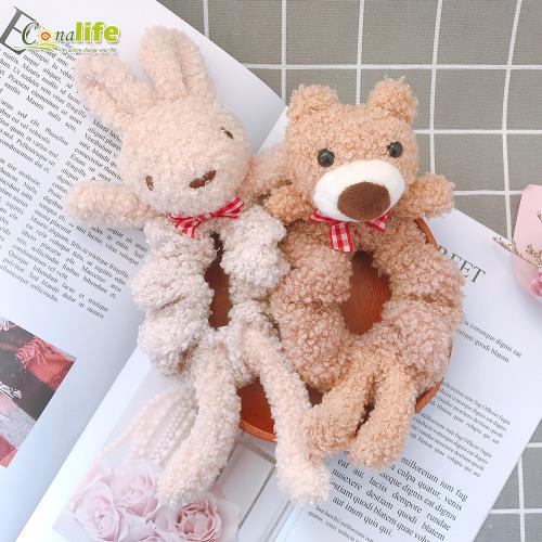 Conalife 韓版毛絨兔子小熊髮圈_(買一贈一)