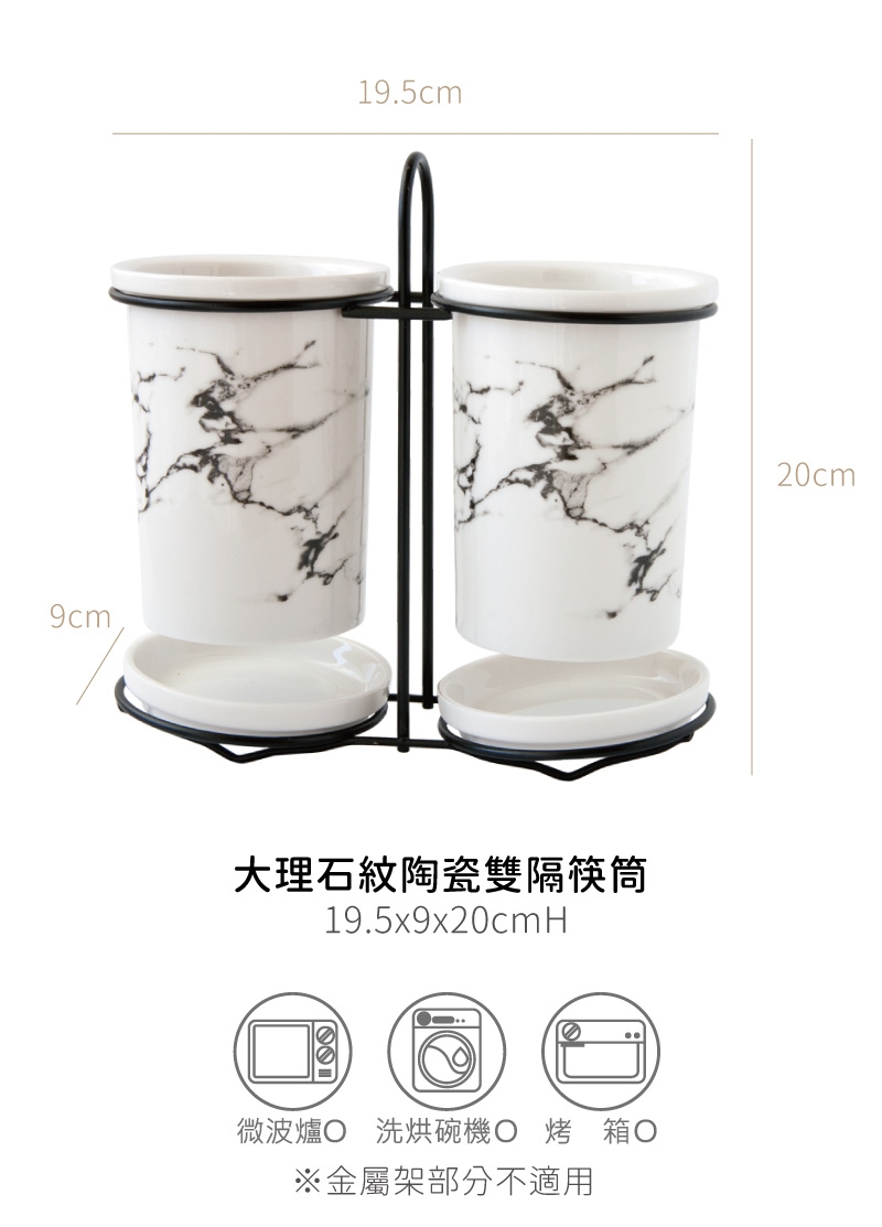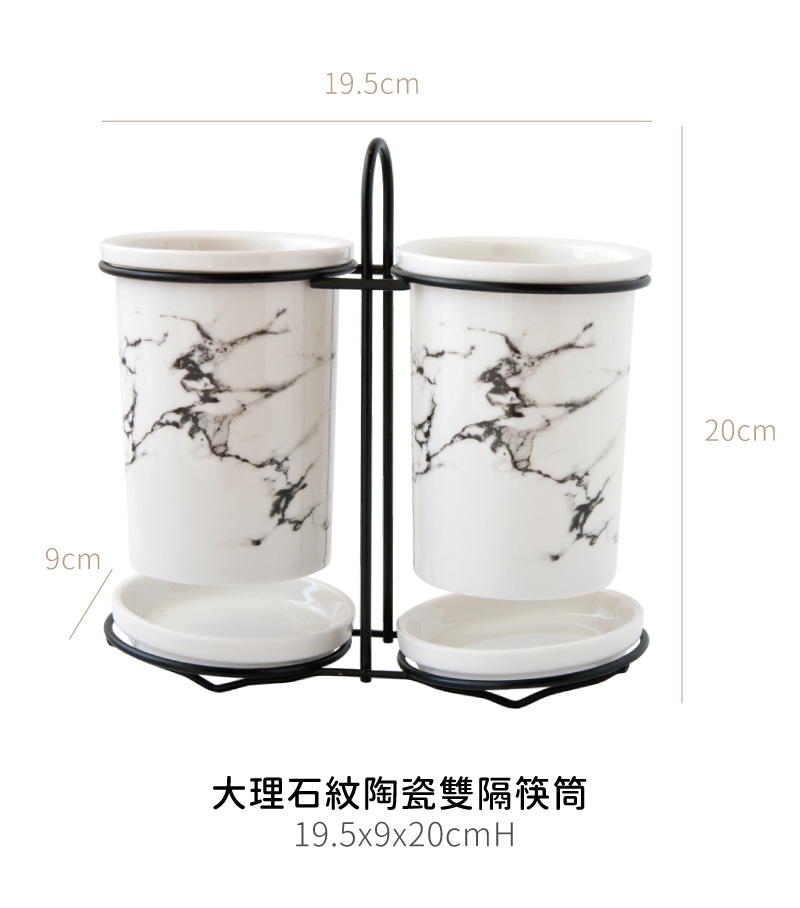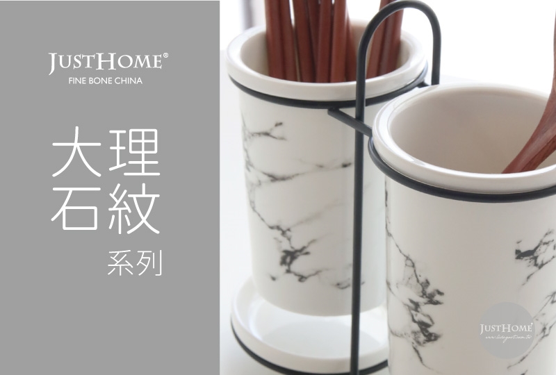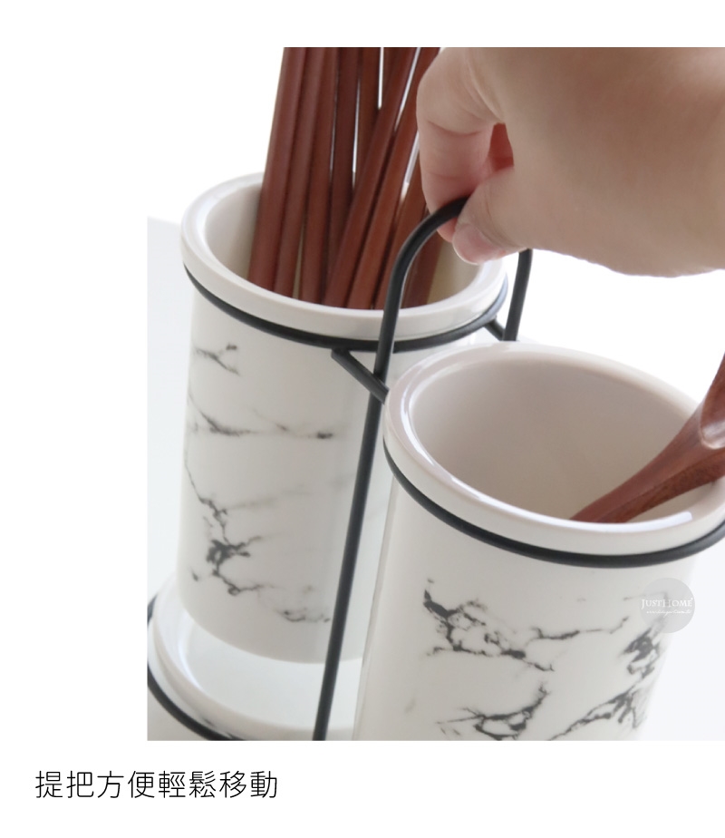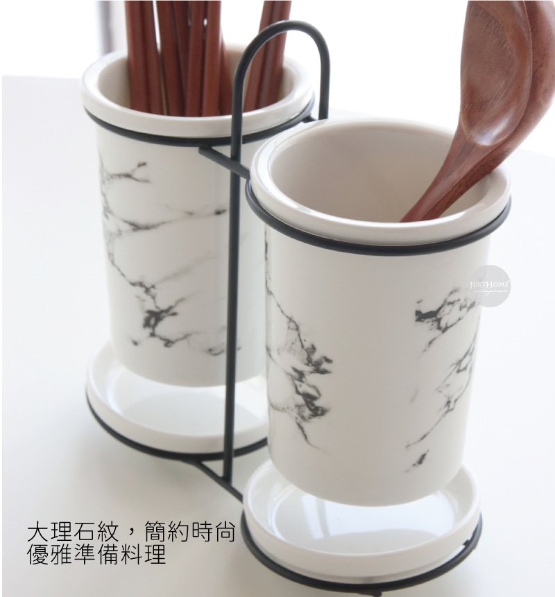 Just Home歐式簡約大理石紋陶瓷2分隔陶瓷筷筒(家用刀叉勺收納盒)
