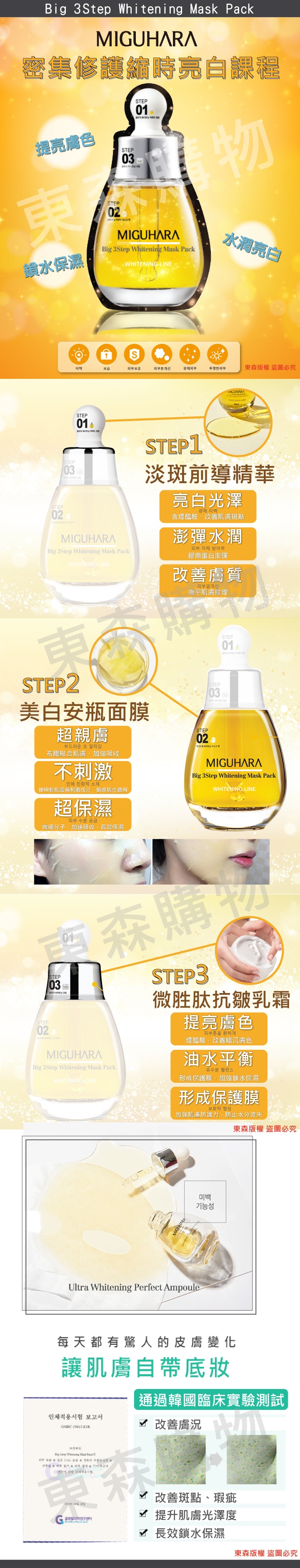 贈品:MIGUHARA萬能三步亮白燈泡面膜貼*1片(開放體驗,退貨無需退還)