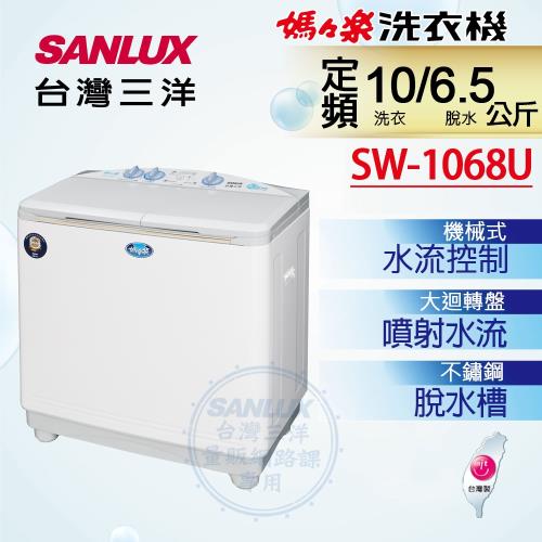 【SANLUX台灣三洋】10公斤雙槽不鏽鋼洗衣機 SW-1068U