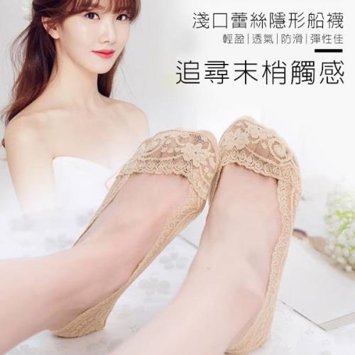 10雙【PinLe】淺口防滑蕾絲隱形船襪5色(360度膠條設計,不脫落)