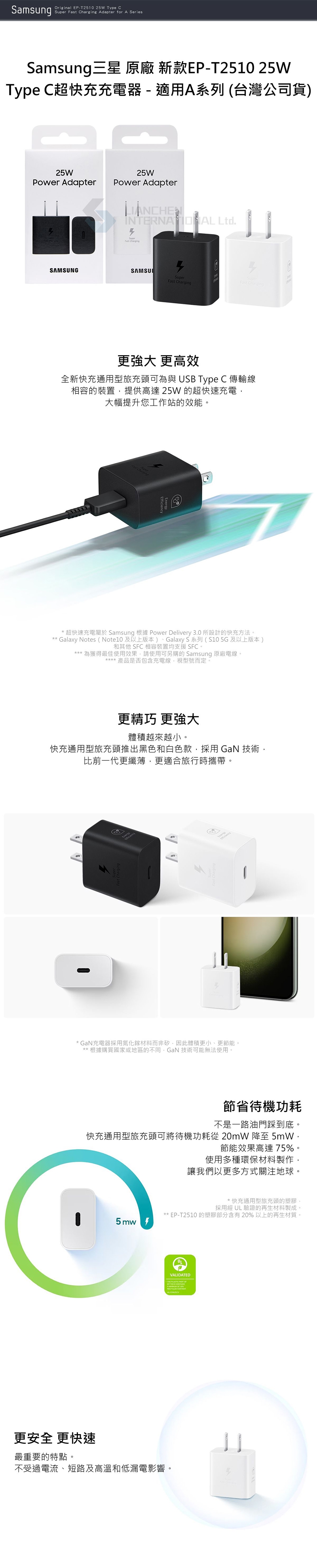 特色:超快速充電最高功率 25W、PD 3.0 PPS 最高功率 25W、待機零功耗( < 5mW )