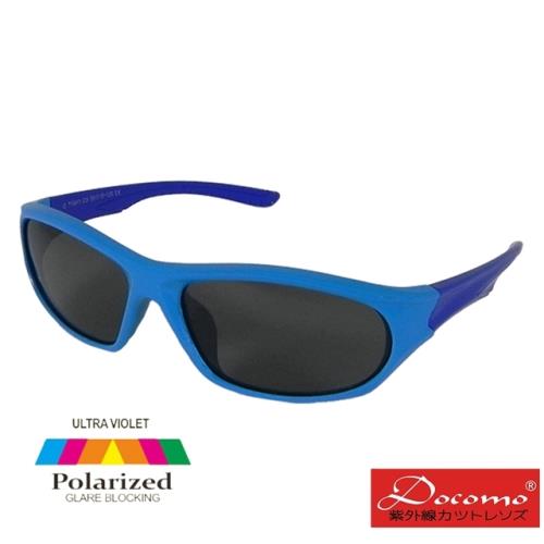 【Docomo大兒童偏光橡膠墨鏡】質感藍色框體 抗UV400防眩光 橡膠材質超彈性
