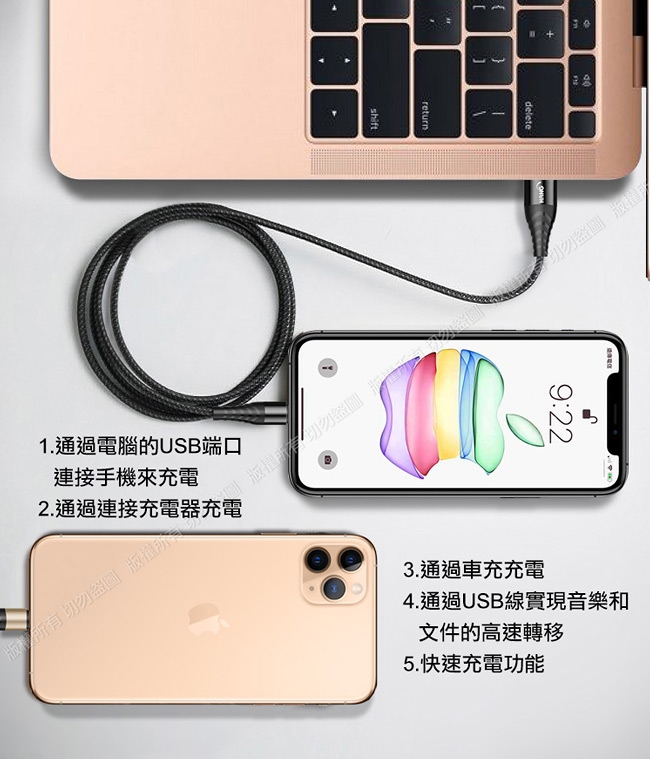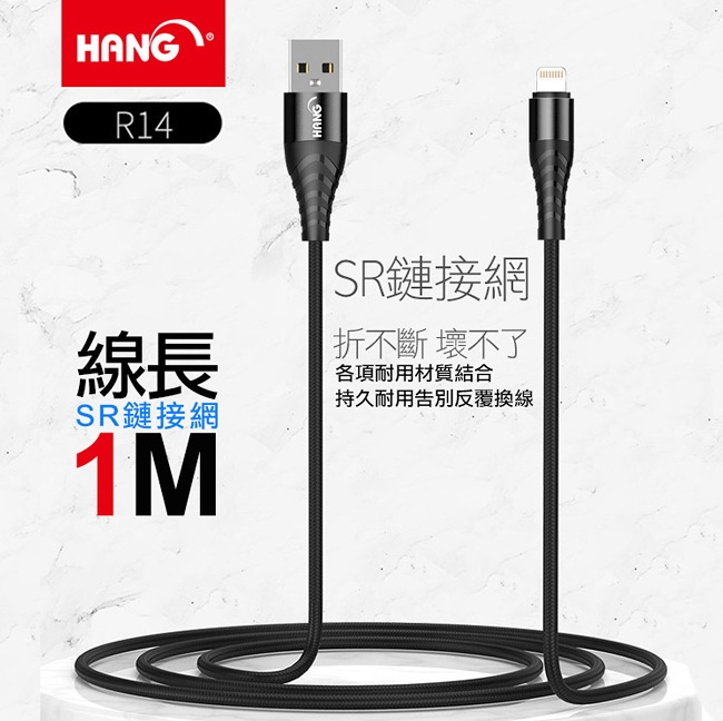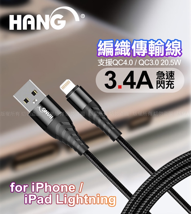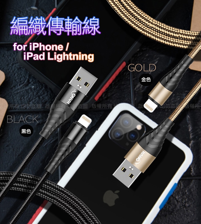 HANG iPhone/iPad 系列 Lightning快速充電金屬風編織傳輸線-100CM-2入