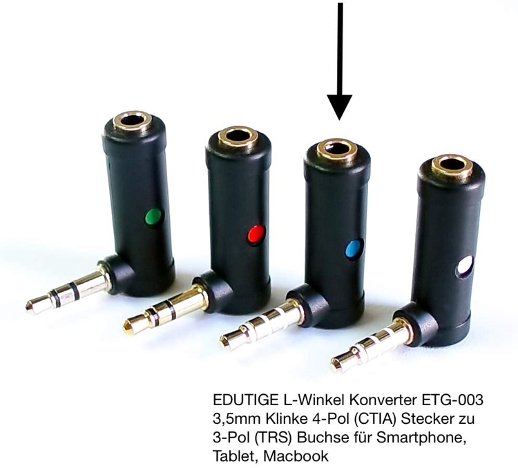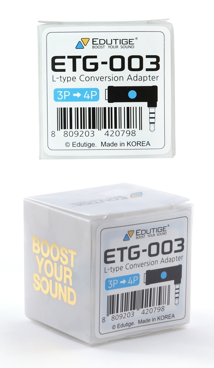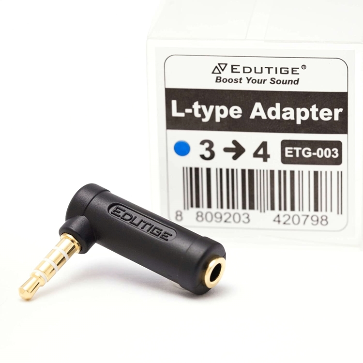 ●【品名】韓國製造EDUTIGE L型音源轉接器ETG-003(母TRS轉公TRRS)L型音訊轉接頭3.5mm轉接TRRS耳麥孔
