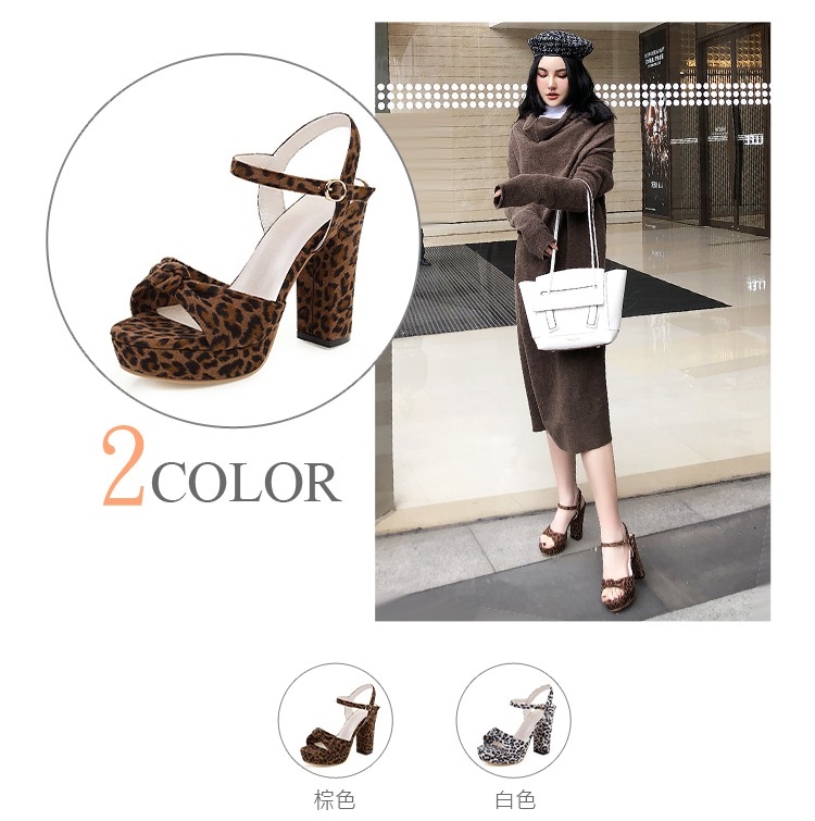 【Kissxxx】時尚經典豹紋單結防水台高跟涼鞋 棕