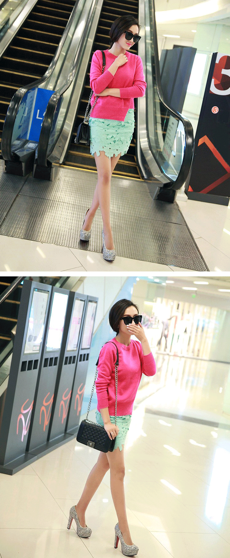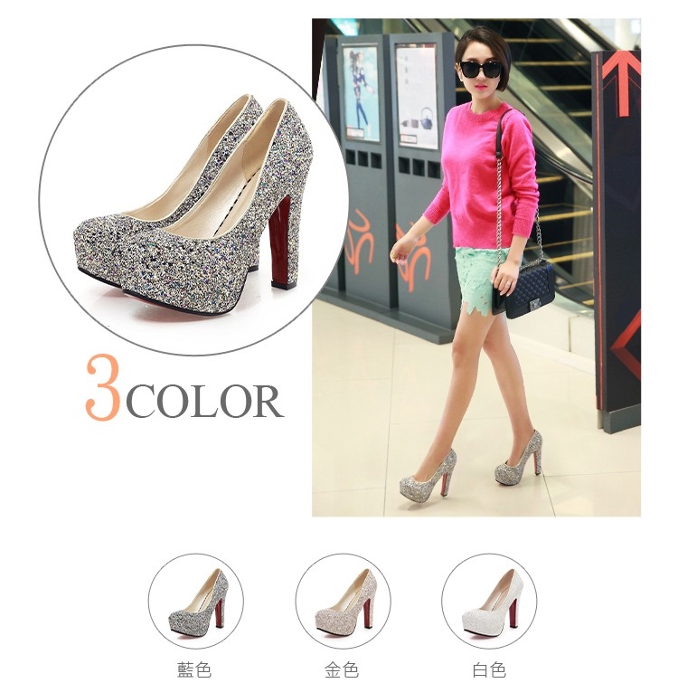 【Kissxxx】立體尖頭防水台經典金蔥亮片高跟鞋 藍