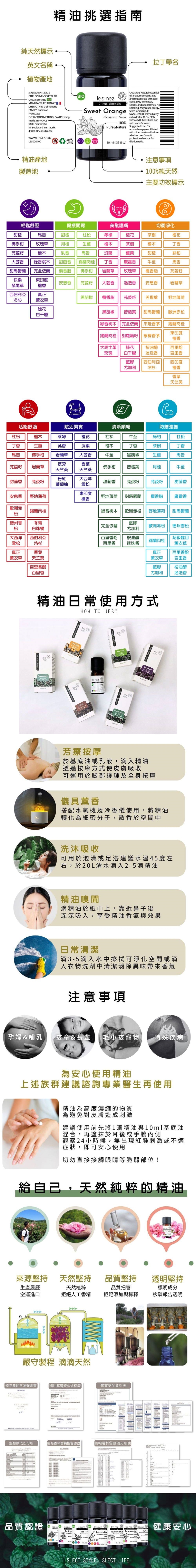 天然純精油為植物的高濃縮物質,不可直接接觸肌膚、不可接觸黏膜,以免造成敏感或刺激。