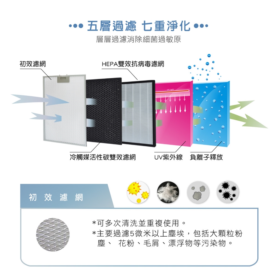 *HEPA雙效抗病毒濾網:建議使用期限約10-12個月(每4週以吸塵器清潔)
