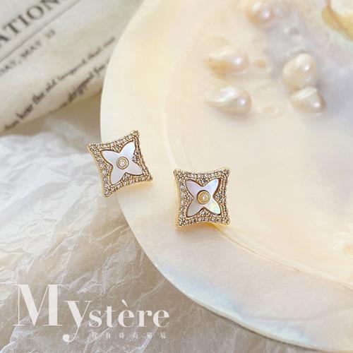 【my stere 我的時尚秘境】925銀針~優雅白貝菱形氣質耳環