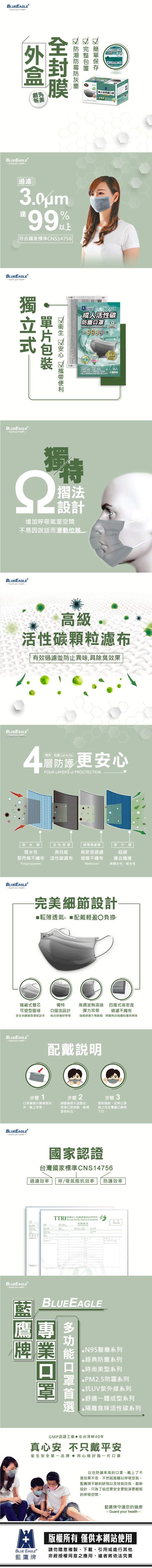 商品名稱:台灣製 成人活性碳口罩 單片包裝