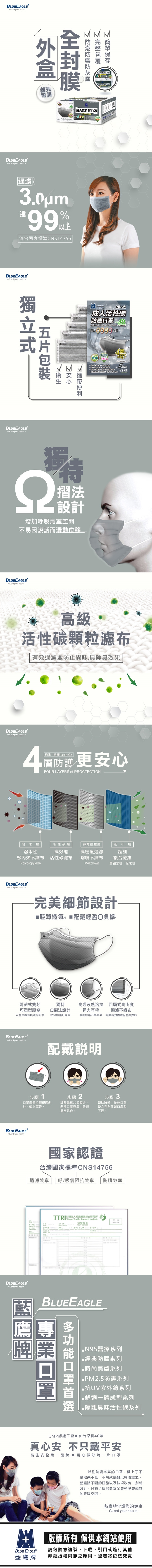 商品名稱:台灣製 成人活性碳口罩 五片包裝