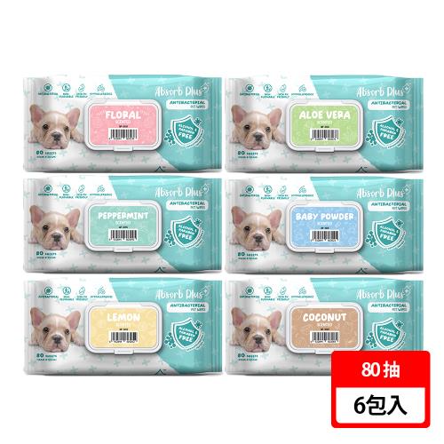 Absorb Plus寵物抗菌濕紙巾80抽(6包組)