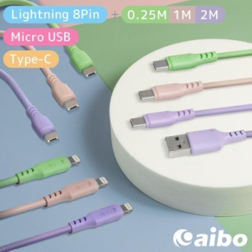aibo 液態矽膠高速充電傳輸線3入組(0.25M+1M+2M)