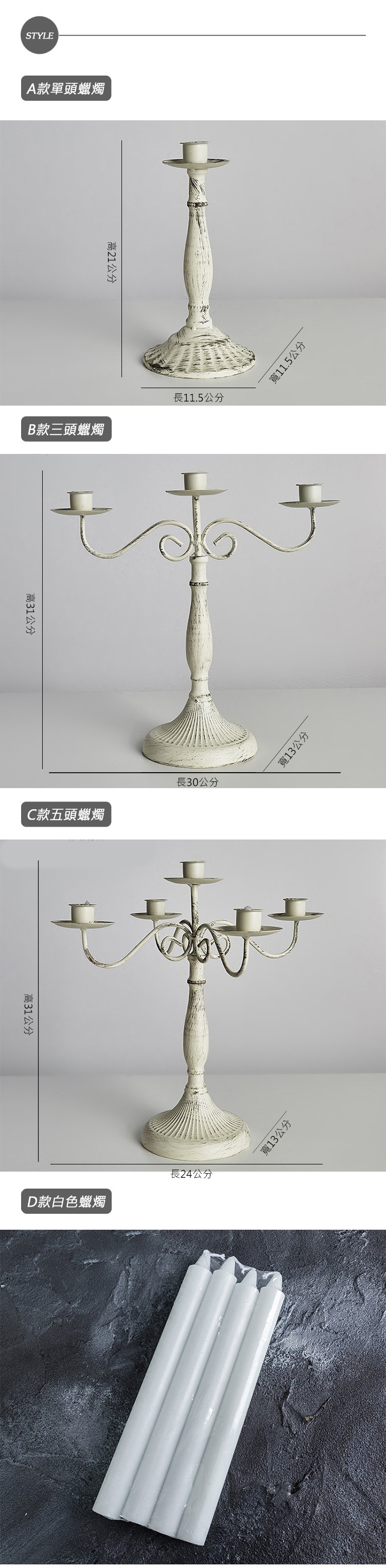 北歐時光 歐式復古鐵藝燭台 D款白色蠟燭4支裝