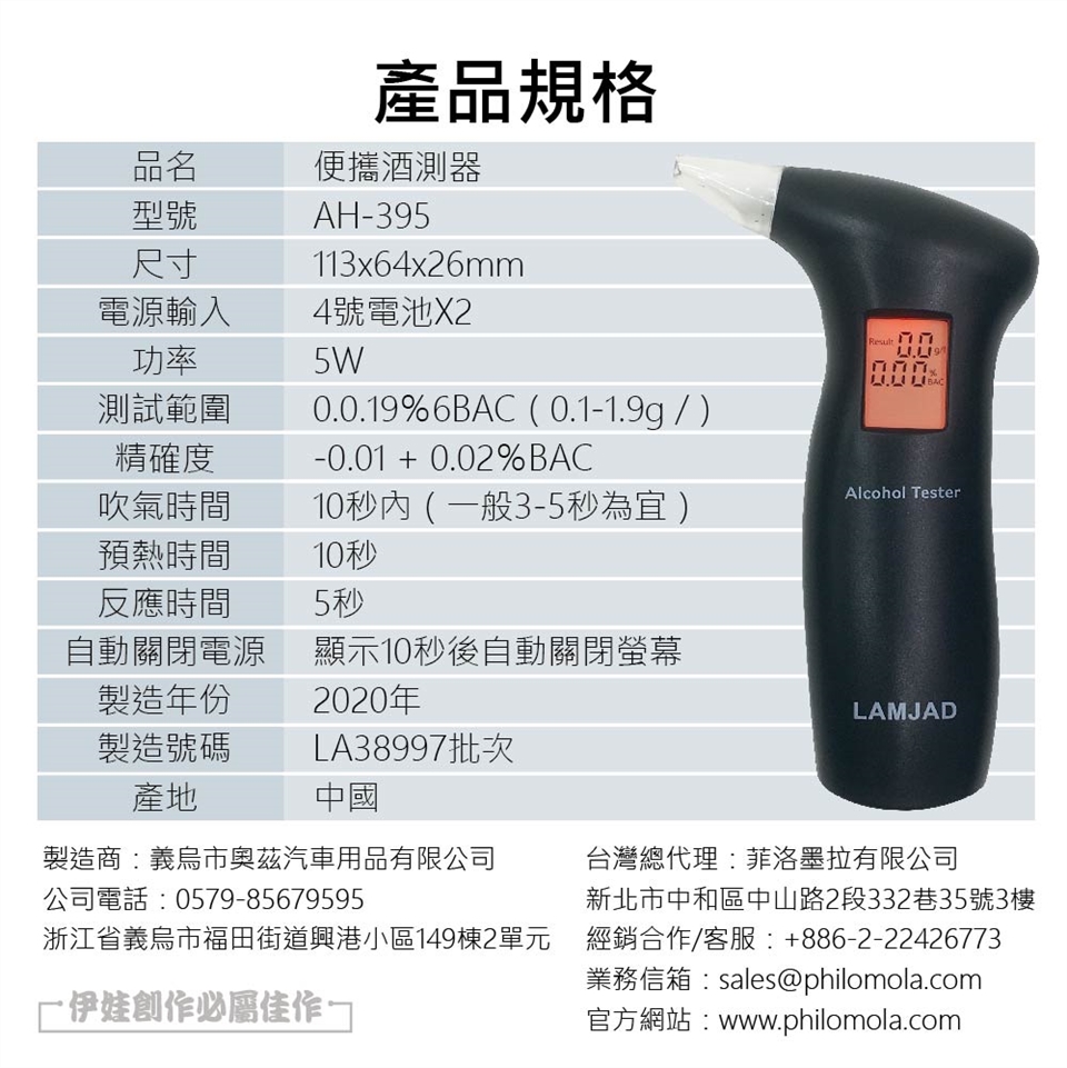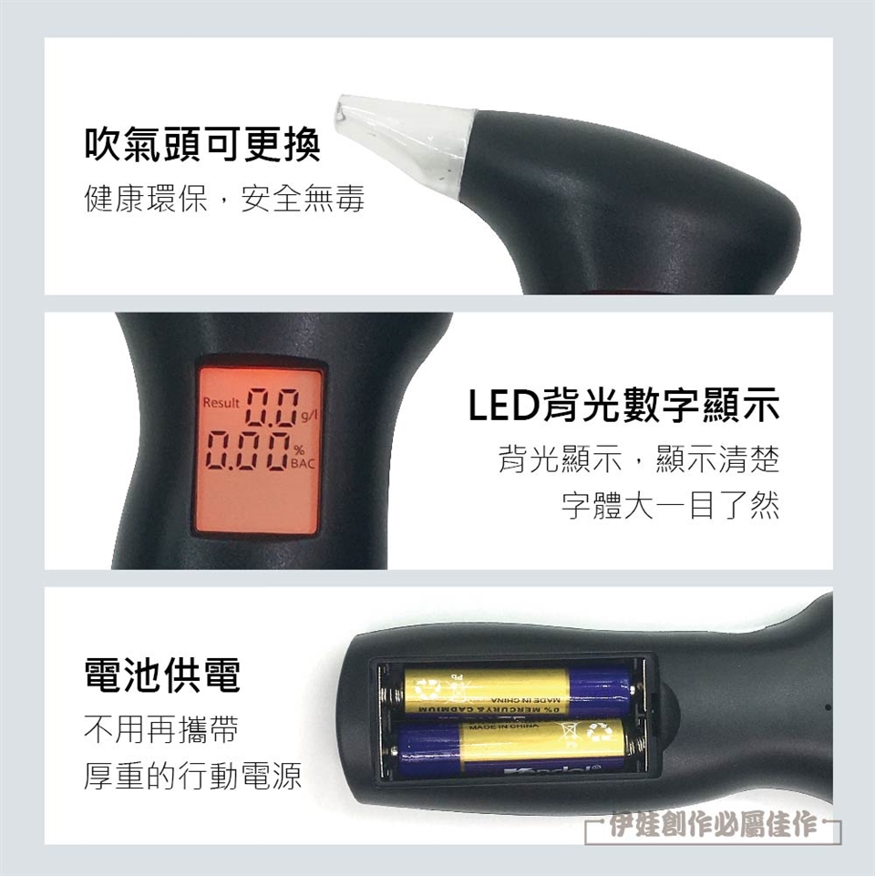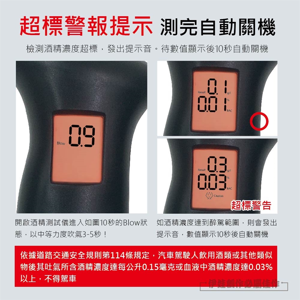 4.便攜酒測器為輔助工具,以促進安全的駕駛。