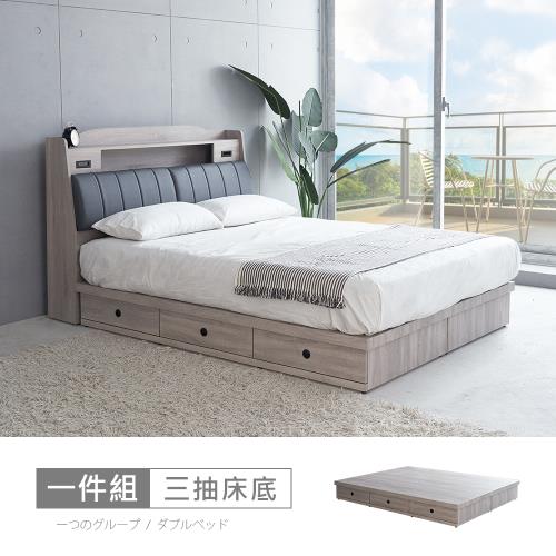 【時尚屋】[5V21]凱爾6尺三抽加大雙人床底5V21-KR010-不含床頭箱+床墊-床頭櫃-免運費/免組裝/臥室系列