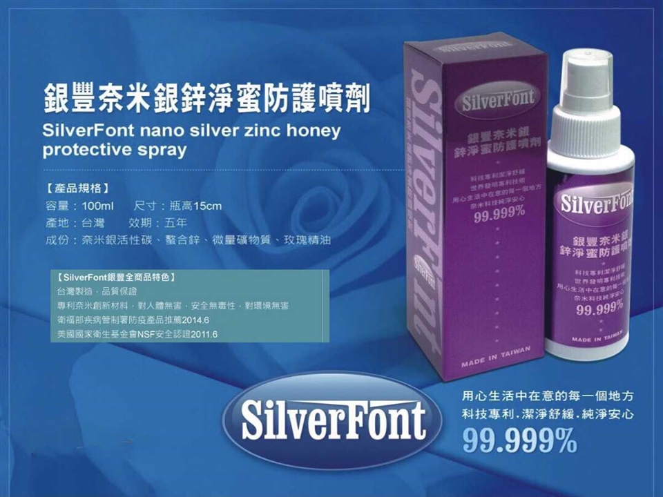 採用奈米銀與奈米鋅,具雙重強效抑菌、除臭效果,並在肌膚形成一層保護膜,抑菌、除臭功能更加倍。不會傷害皮膚、衣物,全身皆可噴灑,讓您長時間抑菌、除臭更安心。