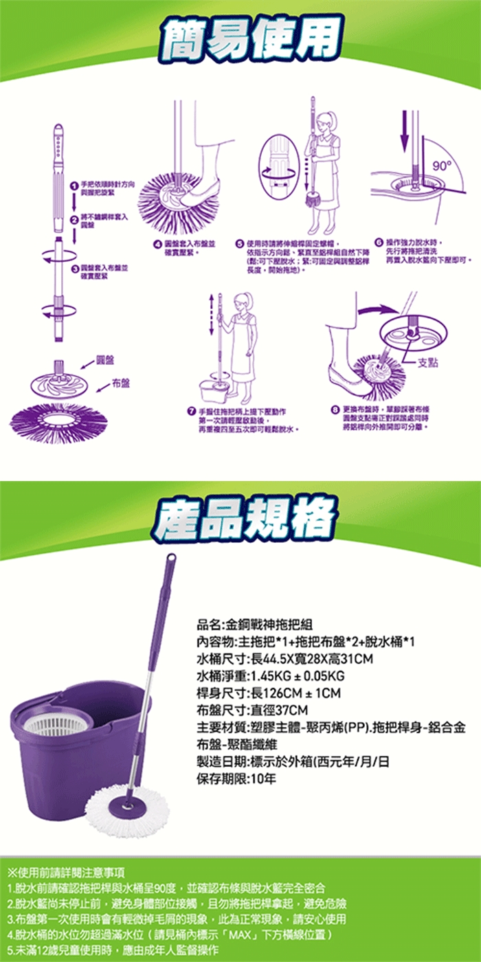 ◎ 內容物:拖把x1+水桶x1+布盤x2