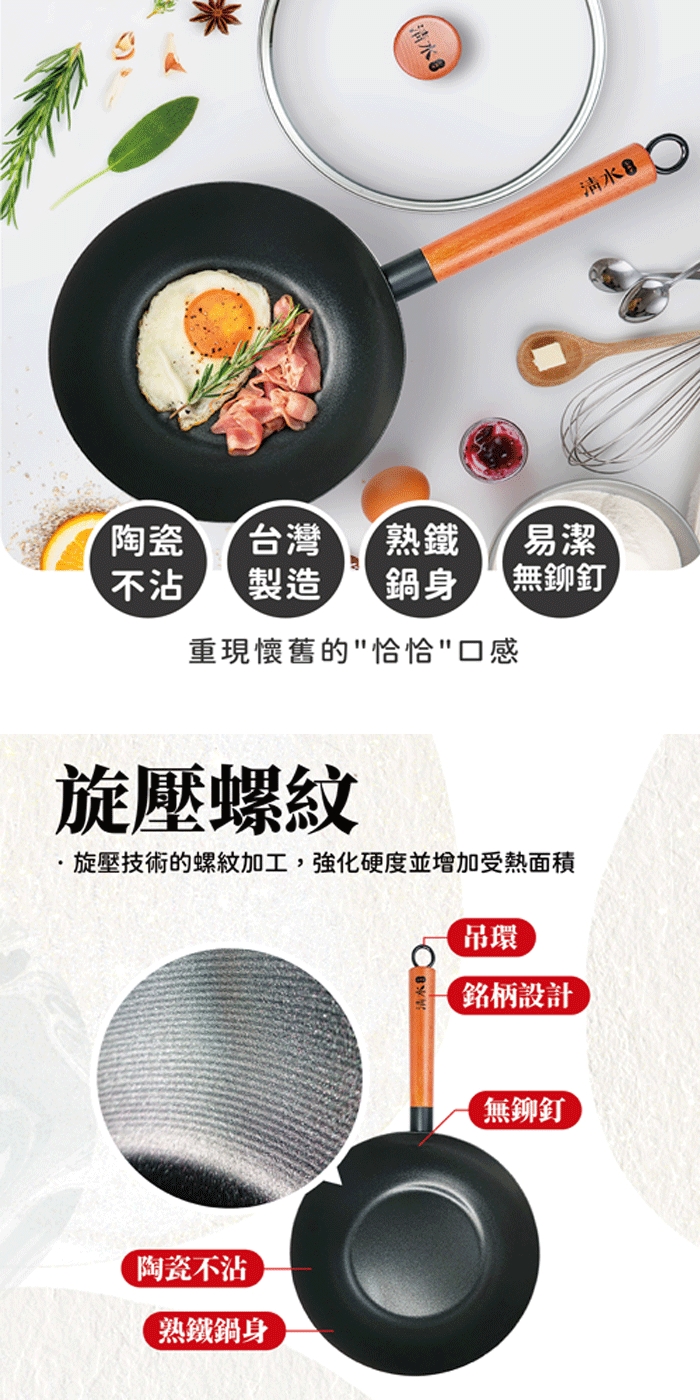 ◎ 材質:鍋身-熟鐵、陶瓷不沾/鍋蓋-強化玻璃、高級不鏽鋼、木質握把