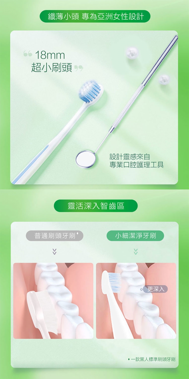 ★ 纖薄小頭小約40%。專為亞洲女士口腔而設計。