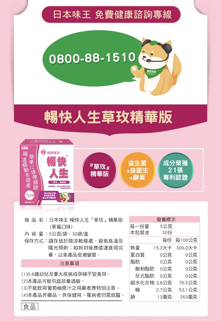 | 商品名稱 | 《日本味王》日本味王暢快人生草玫精華版(草莓口味) |
