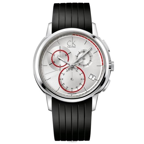 【瑞士 CK手錶 Calvin Klein】大錶徑三眼計時男錶 橡膠錶帶 礦物抗磨玻璃 日常生活防水(K1V27926)