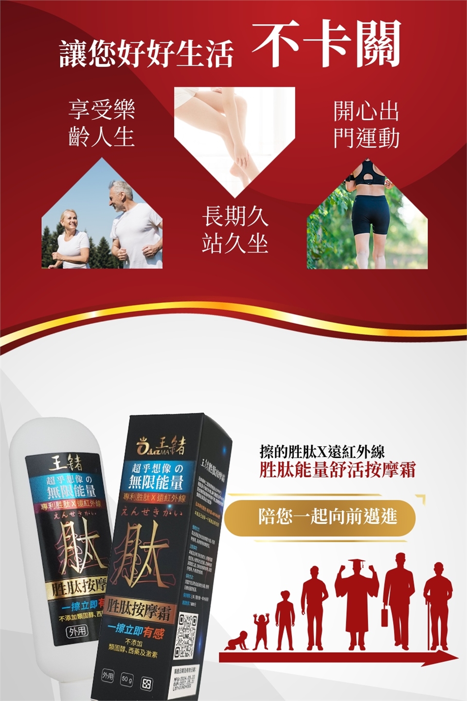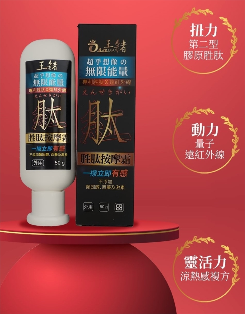 商品詳細介紹 體驗說明 不可體驗 使用方法說明 取出適量塗抹,按摩數分鐘,可隨時使用,每日數次,長期使用效果更佳。 注意事項 本產品含有涼熱感成分,感受程度會因各人體質狀況而異,塗抹時請避開傷口處,如有皮膚異常時,請暫停使用。(外用請勿吞食)