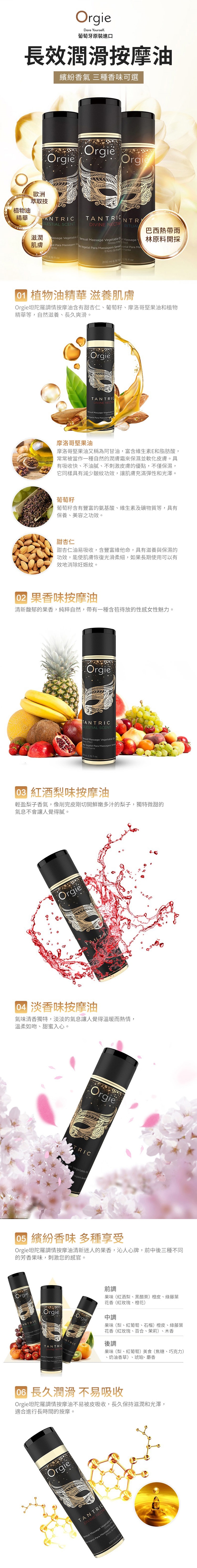 .商品名稱:葡萄牙ORGIE-TANTRIC 坦陀羅調情按摩油(紅酒梨味)200ml