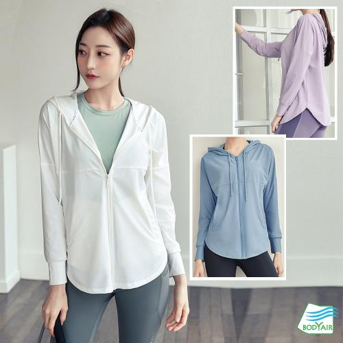 【BODYAIR嚴選】輕彈俏皮遮陽連帽罩衫外套(瑜珈.運動.慢跑.透氣.舞蹈.運動外套)
