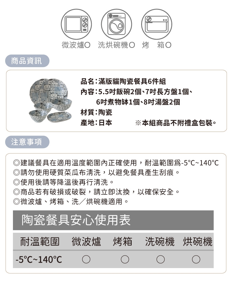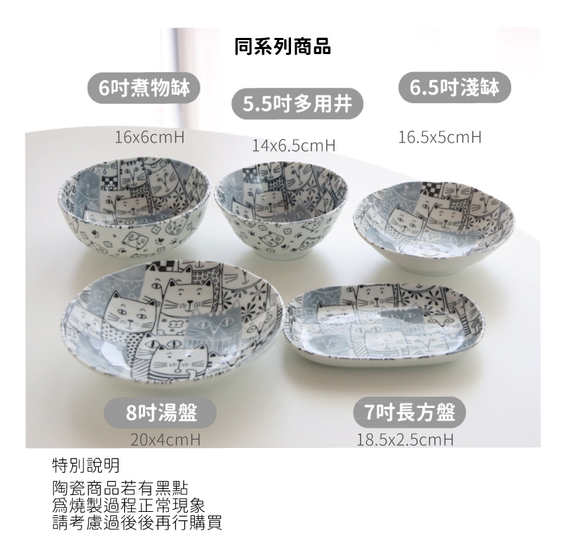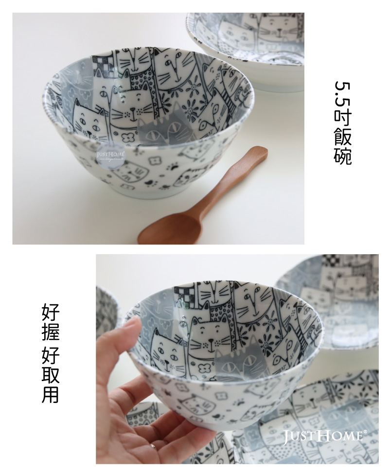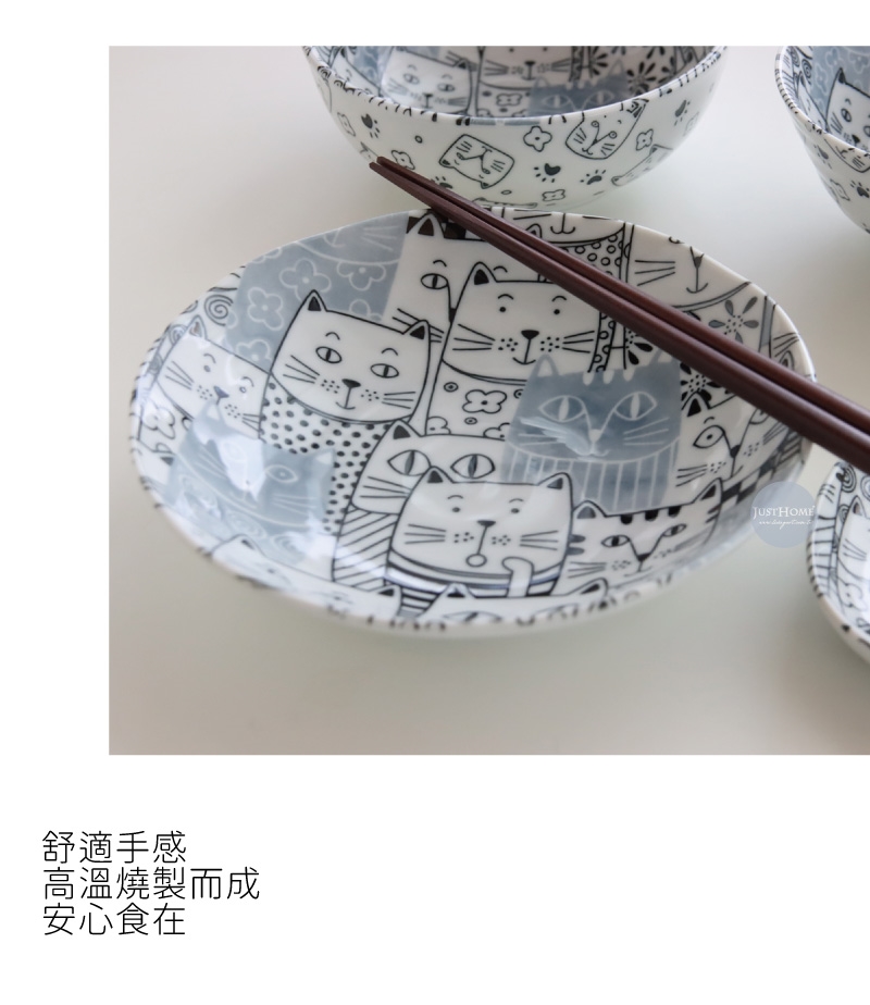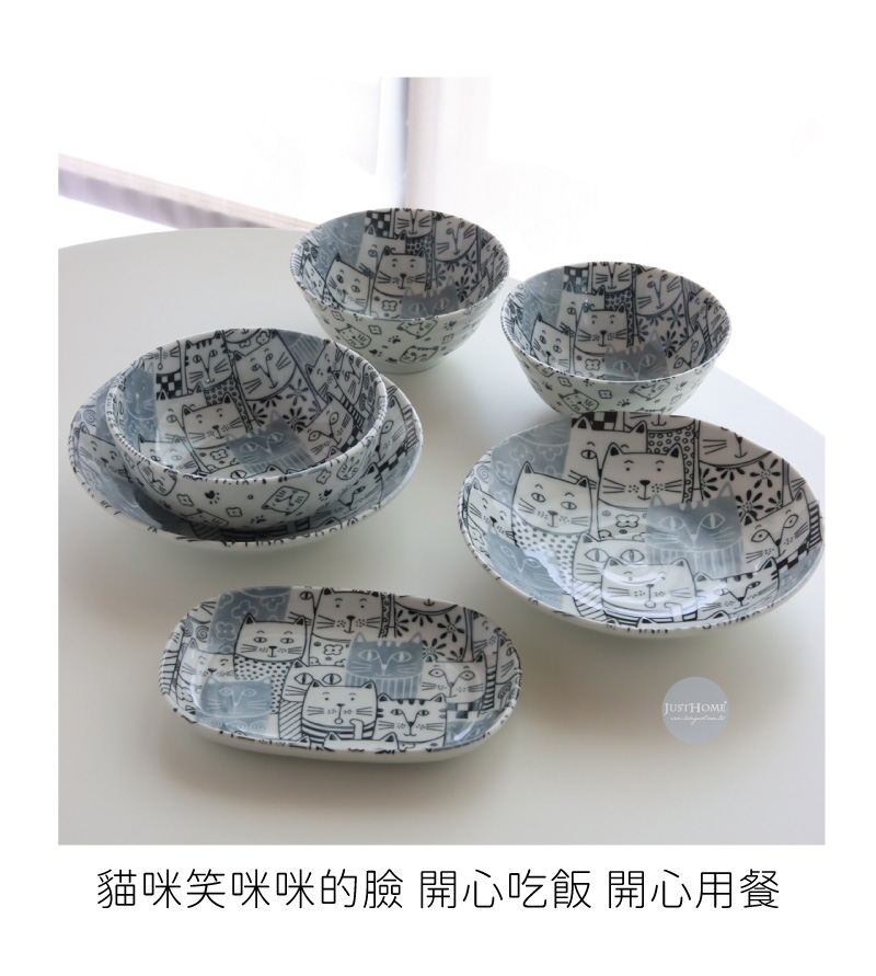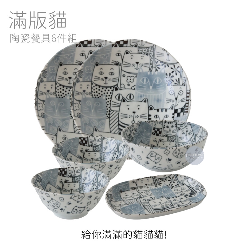 Just Home日本製滿版貓咪世界陶瓷餐具6件組/飯碗/餐盤/湯盤/淺缽/可微波