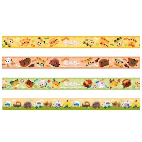 日本製造ENSKY天竺鼠車車紙膠帶PUI PUI紙膠帶4757系列紙膠布(4入組)手帳筆記本標註小貼紙-日本原裝進口