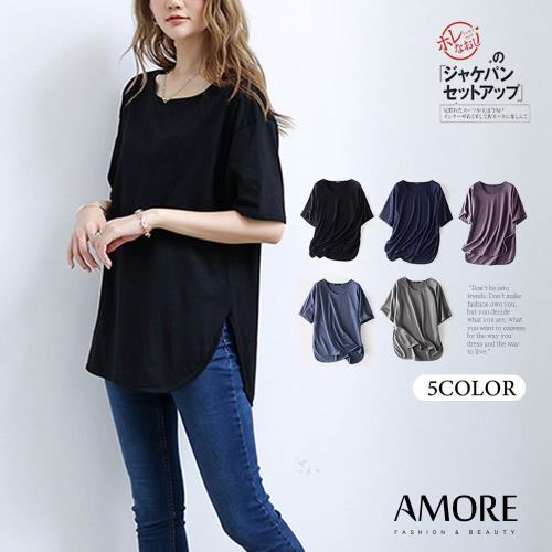AM艾莫兒 日韓簡約開衩前短後長上衣