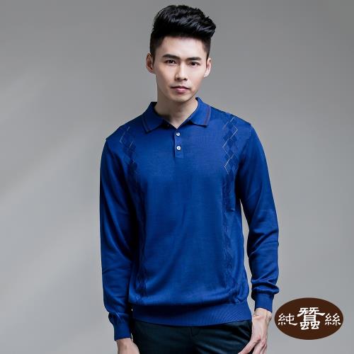【岱妮蠶絲】男菱格紋緹花長袖POLO衫-深藍(FML6ZT40)